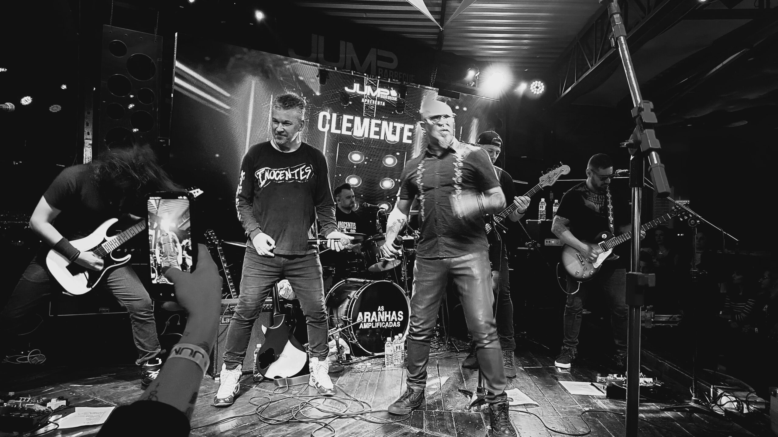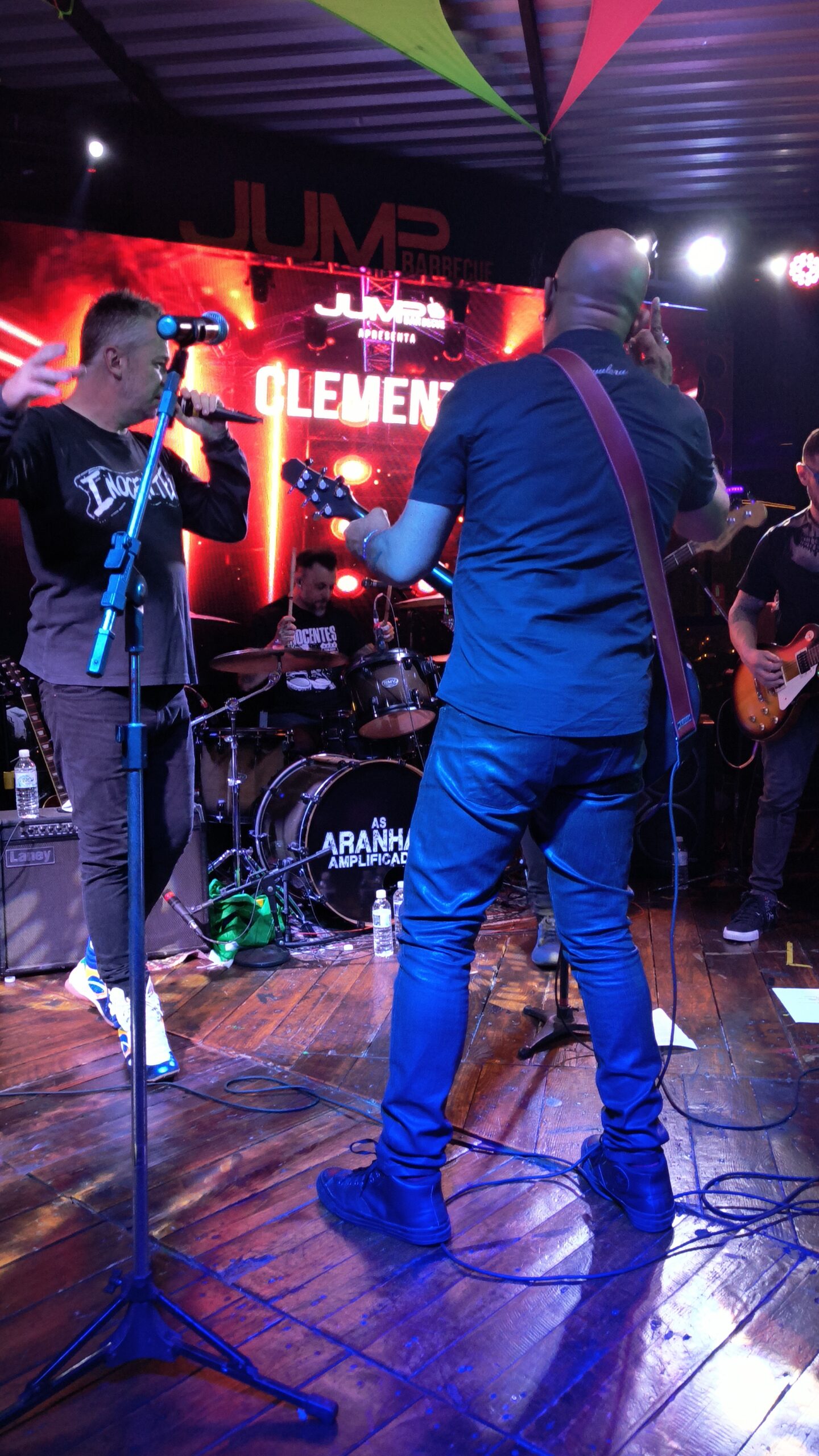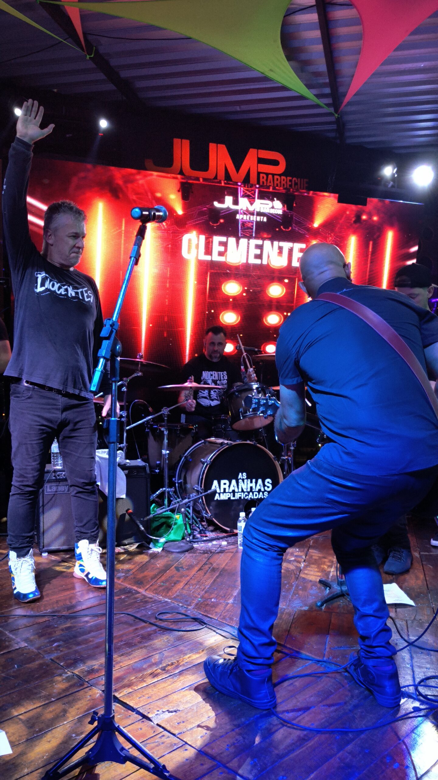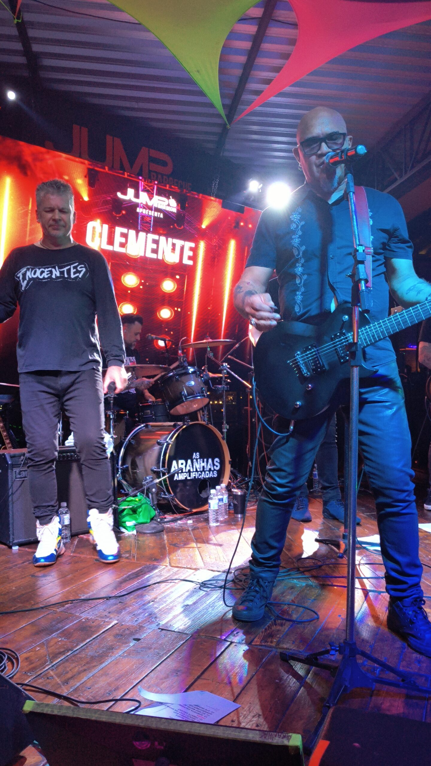 Ele é um veterano dos palcos e um dos principais protagonistas da cena punk rock brasileira. Clemente Tadeu Nascimento, das bandas Inocentes e Plebe Rude, esteve em Jundiaí-SP, na noite de sábado, 21/06, no Jump Barbecue fazendo uma participação mais do que especial com as Aranhas Amplificadas, que fizeram o que mais sabem, rock nsacional de qualidade com grande presença cênica do Glauco Chaves nos vocais e os exímios instrumentistas, Gabriel Braga e Rafael Rosa nas guitarras, Rafael Bottaço no contrabaixo e Marquinhos “Papito” na bateria . Todos estão colaborando nos vocais também, dando maior peso à banda.