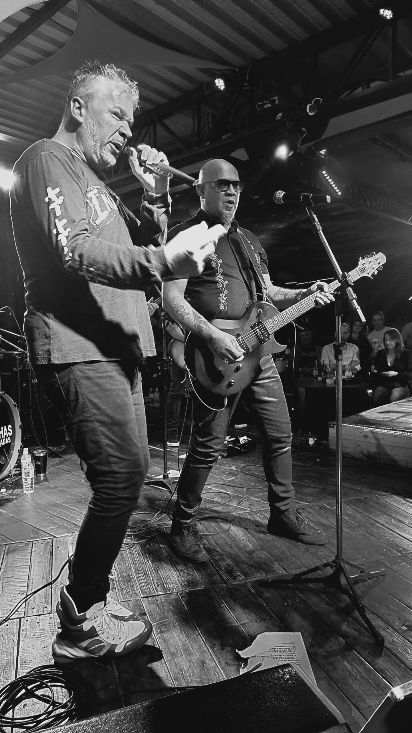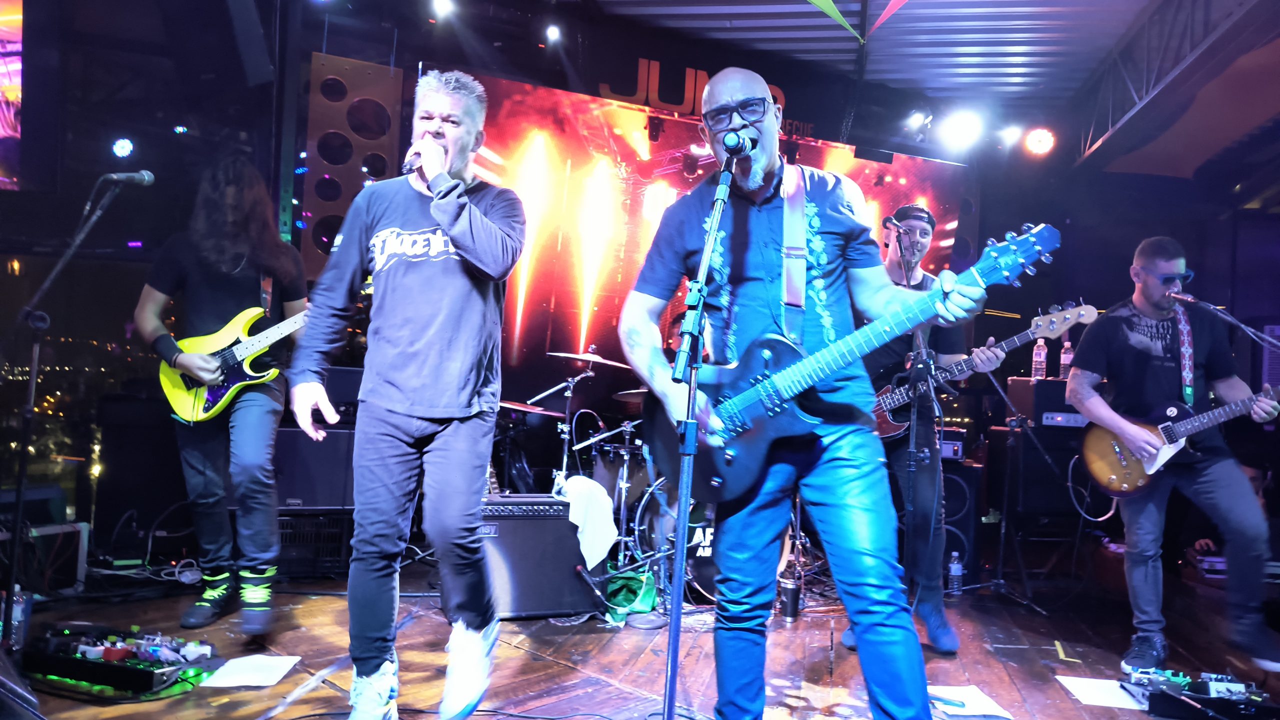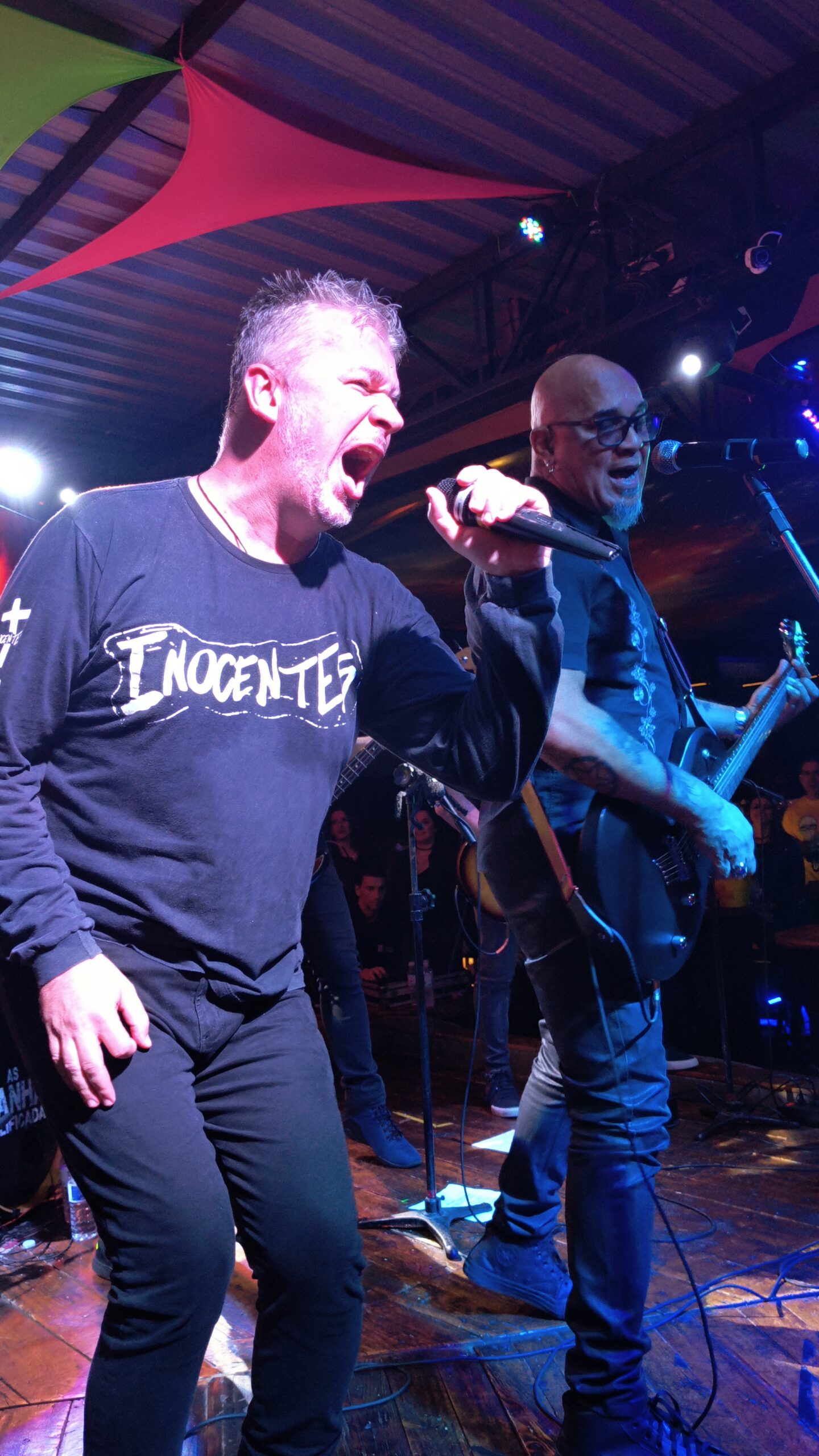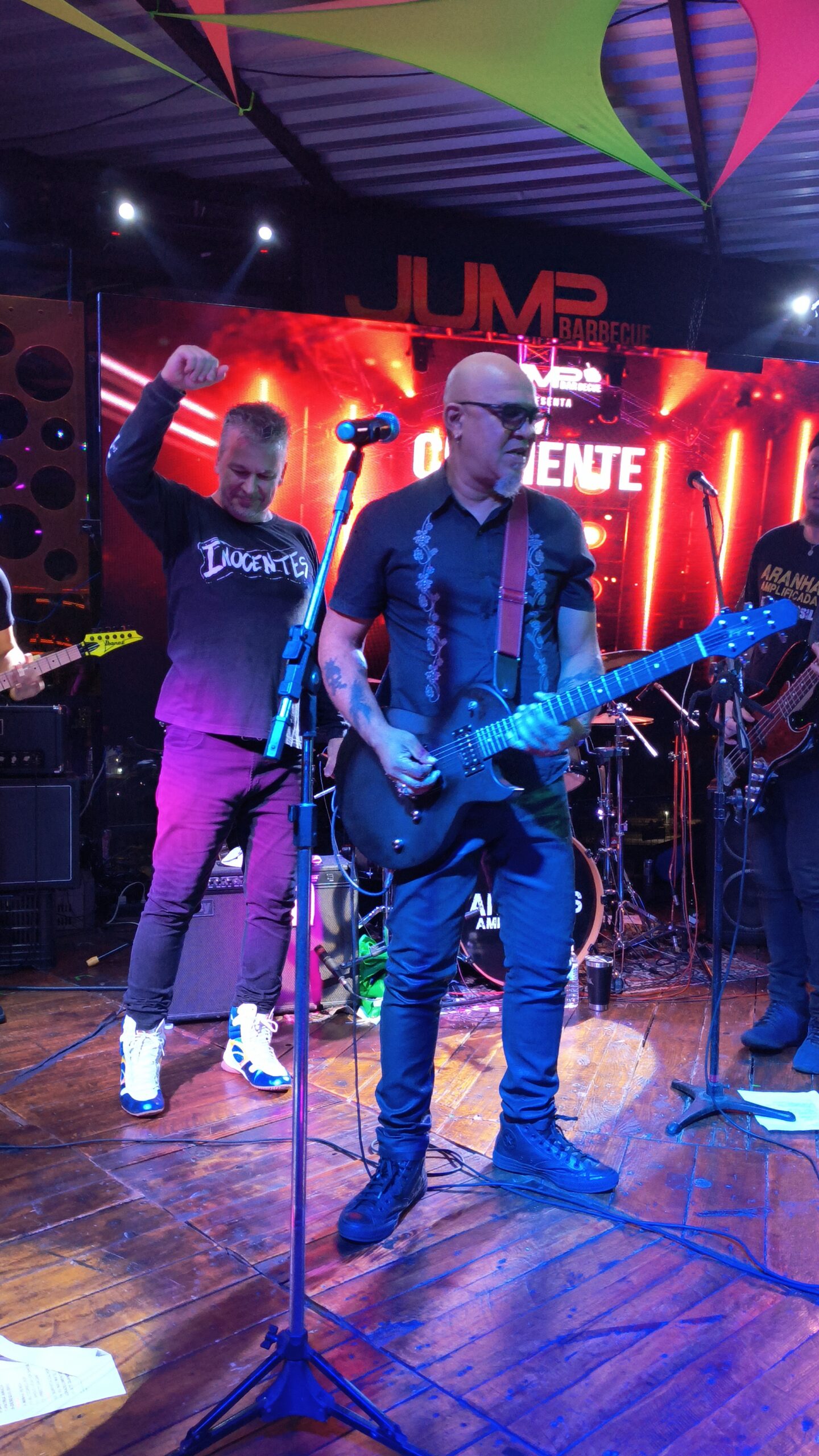 Ele é um veterano dos palcos e um dos principais protagonistas da cena punk rock brasileira. Clemente Tadeu Nascimento, das bandas Inocentes e Plebe Rude, esteve em Jundiaí-SP, na noite de sábado, 21/06, no Jump Barbecue fazendo uma participação mais do que especial com as Aranhas Amplificadas, que fizeram o que mais sabem, rock nsacional de qualidade com grande presença cênica do Glauco Chaves nos vocais e os exímios instrumentistas, Gabriel Braga e Rafael Rosa nas guitarras, Rafael Bottaço no contrabaixo e Marquinhos “Papito” na bateria . Todos estão colaborando nos vocais também, dando maior peso à banda.