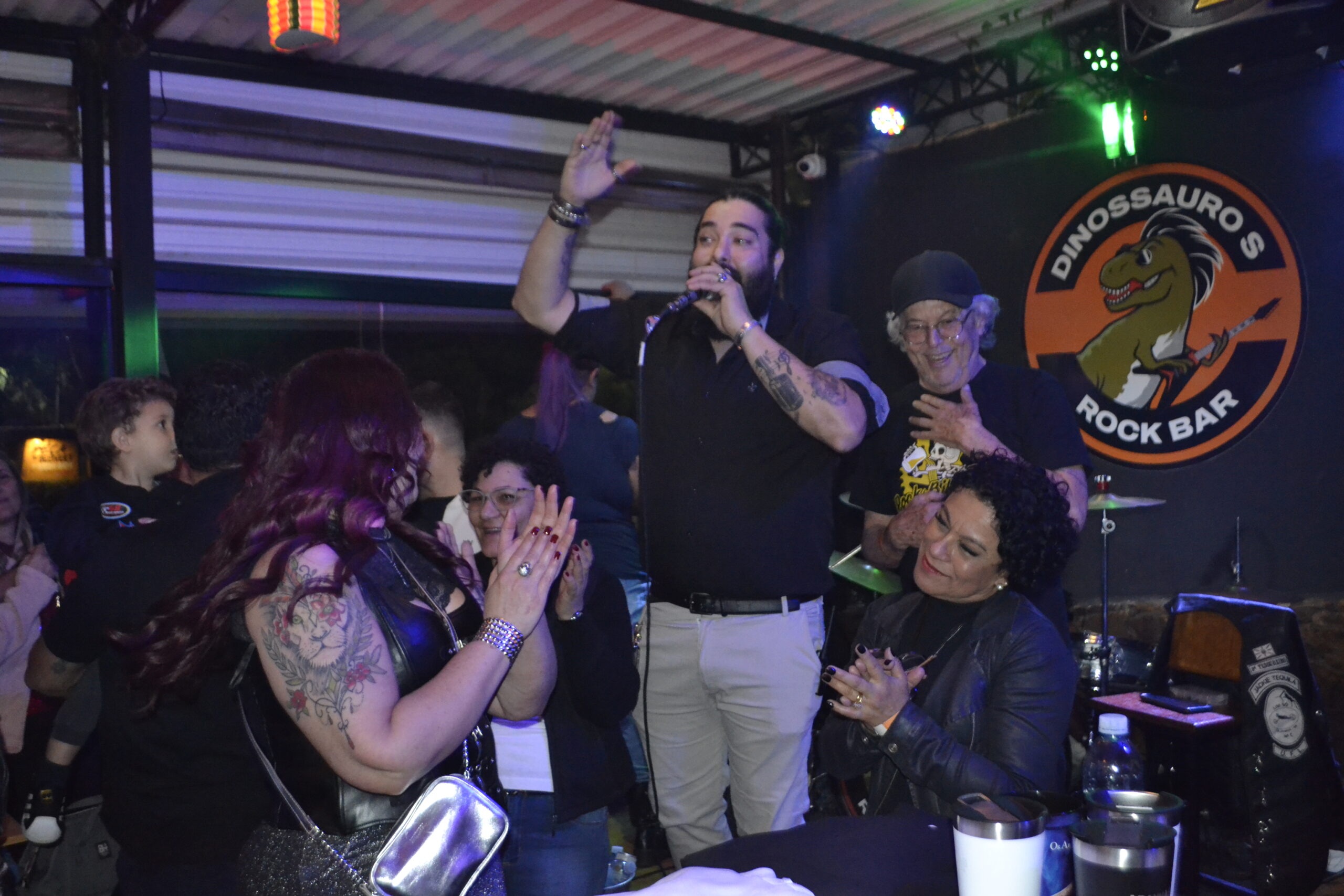 Foi um prazer estar de volta. Aproveito para agradecer a todos os envolvidos por me deixarem registrar a festa de aniversário do Dinossauro´s Rock Bar. Significou muito para mim, Mauricio Filho e para os fãs do Mike na Noite, pois foi ali e por causa de lá que ele surgiu.